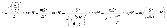 20. Массасы m тас горизонтқа бұрыш жасай лақтырылған және лақтыру орнынан S қашықтықта құлады, Тастың жеткен максимал биіктігі Н тең. Ауа кедергісін ескермей лақтыру жұмысын анықтаңдар. Лақтыру кезінде тасқа энергия беруші F күш әсер етеді. Ұшу кезінде тасқа ауырлық күші әсер етті. Сонда лақтыру жұмысы тастың кинетикалық және потенциалдық энергияларының қосындысына тең болады: