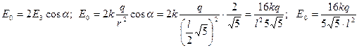 тұрған А нүктесінде төрт өріс қосылады, қорытқы өрістің суперпозициясы Е0 болады. Өріс кернеуліктері Е1 және Е2 өрістері бірін-бірі толықтырады, ал Е0 қалған өрістердің векторлық қосындысы болады. Өрістердің кернеулігі: