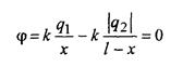 Нәтижесінде, 81. Зарядтары қашықтықта орналасқан. Өріс потенциалы нөлге тең болатын зарядтарды қосатын сызықтың нүктесіндегі өріс кернеулігін анықтаңдар.