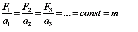 Первый закон Ньютона. Тело сохраняет состояние покоя или прямолинейного равномерного движения до тех пор, пока на него не действуют другие тела. Чем больше масса тела, тем труднее перевести его из одного состояния в другое. Масса тела является мерой его инертности. Состояния покоя и равномерного прямолинейного движения равноценны. Системы отсчета, соответствующие первому закону Ньютона, называются инерциальными. Второй закон Ньютона. Ускорение, с которым движется тело, пропорционально силе, действующей на тело и обратно пропорционально массе этого тела: