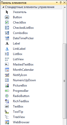 Щёлкните на элементе управления, который хотите добавить, а затем щёлкните в нужном месте формы – элемент появится на форме. Элемент можно перемещать по форме схватившись за него левой кнопкой мышки (иногда это можно сделать лишь за появляющийся при нажатии на элемент квадрат со стрелками