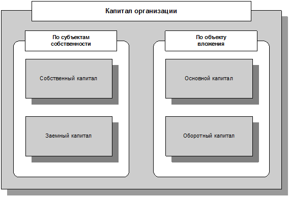 По объекту вложений: · Основной капитал – капитал, инвестированный во все виды внеоборотных активов организации. · Оборотный капитал – капитал, инвестированный в оборотные активы организации.