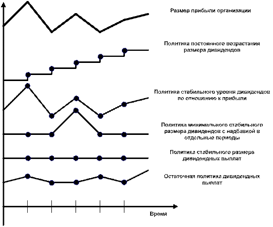 Остаточная политика дивидендных выплат. Оптимальная доля дивидендов – это функция четырех факторов: · предпочтение инвесторами дивидендов по сравнению с приростом капитала; · инвестиционные возможности организации; · целевая структура капитала организации; · доступность и цена внешнего капитала. Последние три фактора и объединяются в модель выплаты по остаточному принципу. Эта теория предполагает, что фонд выплаты дивидендов образуется после того, как за счет прибыли удовлетворена потребность в формировании собственных финансовых ресурсов, обеспечивающих в полной мере реализацию инвестиционных возможностей организации. Если по имеющимся инвестиционным проектам уровень внутренней ставки доходности превышает средневзвешенную стоимость капитала, то основная часть прибыли должна быть направлена на реализацию таких проектов, так как она обеспечит высокий темп роста капитала (отложенного дохода) собственников. Поскольку и схема инвестиционных возможностей, и уровень прибыли варьируют по годам, строгое следование остаточному принципу выплаты дивидендов приводит к их изменчивости – в одном году компания могла бы объявить, что дивидендов не будет ввиду хороших инвестиционных возможностей, а в следующем году выплатить крупные дивиденды, так как инвестиционные возможности невелики. Меняющиеся дивиденды менее желательны, чем стабильные, а изменение выплаты дивидендов может подать ложные сигналы и подорвать доверие инвесторов. Политика стабильных дивидендов. Существует мнение, что дивидендная политика служит целям информирования инвесторов. Многие финансовые менеджеры стремятся поддерживать стабильность или умеренный рост дивидендов, чтобы избежать значительных колебаний или непостоянства в политике выплат акционерам. Руководители организации не любят наращивать дивиденды, если они чувствуют, что в будущем возможно сокращение доходов. Для организации, поддерживающей практику стабильных дивидендов, неожиданное сокращение или рост дивидендов, как правило, отражается на котировках акций. Рост дивидендов может привести к росту котировок, потому что инвесторы воспримут его как обещание замечательных перспектив. Сокращение дивидендов соответственно может подействовать в противоположном направлении. Если менеджеры стараются поддерживать стабильность дивидендов, то такие изменения уровня выплат могут отражать ценную информацию, которую инвесторы будут воспринимать однозначно. Политика стабильного размера дивидендных выплат предполагает выплату неизменной их суммы на протяжении продолжительной: периода (при высоких темпах инфляции сумма дивидендных выплат корректируется на индекс инфляции). Преимуществом этой политики является ее надежность, которая создает чувство уверенности у акционеров в неизменности размера текущего дохода вне зависимости от различных обстоятельств, определяет стабильность котировки акций на фондовом рынке. Недостаток – слабая связь с финансовыми результатами деятельности организации, в связи с чем в периоды низкой прибыли инвестиционная деятельность может быть сведена к нулю. Для того чтобы избежать этих негативных последствий, стабильный размер дивидендных выплат устанавливается на относительно низком уровне, что и относит данный тип дивидендной политики к кат