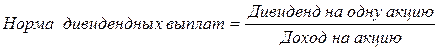 Норма дивидендных выплат = Ценность акции * Рентабельность акции.
