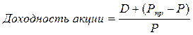 · Доходность акции. Рассчитывается с учетом курсовой разницы, которую владелец акции может получить при продаже акции: