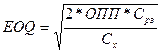 ОПП – объем производственного потребления товаров Срз – средняя стоимость размещения одного заказа Сх – стоимость хранения единицы товара