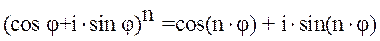 Эта формула была получена Муавром в 1707 году. С её помощью легко выводятся соотношения для косинусов и синусов кратных дуг. Это было продемонстрировано в § 3. В 1748 году Эйлер вывел замечательную формулу