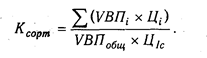 где ЦО и Ц 1 - соответственно цена изделия до и после изменения качества; Со и C1 - соответственно уровень себестоимости изделия до и после изменения качества; K1 - количество произведенной продукции повышенного качества; VРП1 - объем реализации продукции повышенного качества. Если предприятие выпускает продукцию по сортам и произошло изменение сортового состава, то вначале необходимо рассчитать, как изменились средневзвешенная цена и средневзвешеннаясебестоимость единицы продукции, а затем по приведенным выше алгоритмам определить влияние сортового состава на выпуск товарной продукции, выручку и прибыль от ее реализации. Средневзвешенная цена рассчитывается следующим образом: