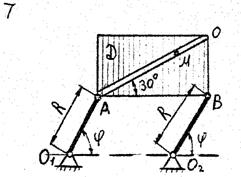 Звено АВ совершает плоскопараллельное движение, причем точка Р мгновенный центр скоростей (МЦС) звена АВ и ВР┴VB; AP┴VA. Находим: ωAB =VA/AP. По теореме синусов для треугольника BPA имеем: