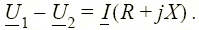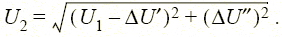 и характеризует разность действующих напряжений по концам элемента сети (линия, трансформатор). Поперечная составляющая характеризует фазовый сдвиг (угол) между векторами этих же напряжений. Тогда действующее значение междуфазного напряжения в конце линии
