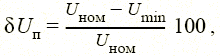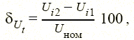 где ¦ном — номинальное значение частоты, Гц; ¦у — фактическое установившееся (измеренное) значение частоты, Гц. Отклонение напряжения. Напряжение в узлах электроэнергетической системы может быть различным и определяется балансом реактивной мощности в этих узлах. Отличие фактического установившегося напряжения U у в заданной точке сети от его номинального значения U ном характеризуется отклонением напряжения d U у. Отклонения напряжения, определяемые в процентах от номинального значения, устанавливаются в том или ином узле ЭЭС в зависимости от параметров сети и нагрузки узла: