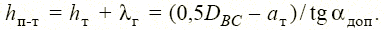 При известных значениях αдоп, расстояния между соседними фазами D BC, длины гирлянды с арматурой и расстояния по горизонтали от оси стойки до троса а т из этого выражения однозначно определяется искомая величина h т. Наименьшее допустимое изоляционное расстояние по воздуху от токоведущих до заземленных частей ВЛ у доп определяется условиями исключения пробоя воздушного промежутка при рабочем напряжении, при грозовых и внутренних перенапряжениях, а также условием безопасного подъема ремонтного персонала на опору, когда линия находится под напряжением. Последнему условию соответствует наибольшее значение у доп, которое для ВЛ 35—500 кВ составляет от 1,5 до 4,5 м.