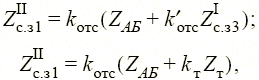 Коэффициент отстройки k отс = 0,8—0,9 учитывает погрешности трансформаторов тока и напряжения, к которым подключено реле сопротивления, и погрешность самого реле сопротивления. Аналогично определяются сопротивления срабатывания первых ступеней всех защит. Сопротивления срабатывания вторых ступеней защит отстраиваются от суммарного сопротивления защищаемой линии и сопротивления срабатывания первой ступени защиты смежной линии, а также от короткого замыкания за трансформатором приемной подстанции, например: