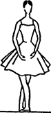 Для первоначального изучения pas jete служит следующее упражнение. Стать в V позицию, правая нога впереди; одновременно demi-plie, левая нога отводится в сторону II позиции скользящим движением, причем колено и пальцы вытягиваются, и носок касается II позиции на полу. Тогда оттолкнуться правой ногой от пола прыжком, вытянув пальцы и колено, левую ногу вернуть на место правой и опуститься на нее на demi-plie. Правая нога идет sur le cou-de-pied сзади (рис. 55).