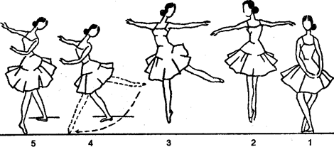 Рис. 84. Pas failli Можно закончить и иначе, приведя руки в позу preparation a la pirouette, так, что заключительная поза failli может служить как preparation с IV позиции для tour или какого-нибудь другого движения (рис. 84).