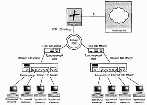 Соединение с маршрутизатором, предоставляющим доступ к глобальной сети, является критическим звеном в общей топологии локальной сети. Некорректное конструктивное решение приведет к снижению эффективности обработки исходящего и входящего трафика. Не рекомендуется использовать технологии локальных сетей, которые используют конкурирующие методы доступа к среде передачи. Поддерживающие интенсивный трафик между локальной и глобальной областью сети выгодным образом отличаются здравым методом установления соединения. Выбранная технология должна быть оптимальной с точки зрения номинальной скорости передачи данных и метода доступа к среде. Технологии конкурирующего метода доступа к среде использовать нецелесообразно. В этом случае, даже если выделить для канала связи отдельный порт коммутатора, область связи с глобальной сетью превратится в самое узкое место системы.