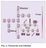 Протокол LON (точнее LONTalk) был разработан американской компанией Echelon Corporation для построения интеллектуальных систем жизнеобеспечения зданий. В основе LON-технологии лежит использование специального интерфейсного кристалла Neuron. В 1990Кг. компания ECHELON заключила договор с компаниями Toshiba и Motorola об исключительном праве этих компаний на его производство. Этот однокорпусный кристалл содержит 3 микропроцессора: MAC (media access control CPU - ЦП доступа к среде передачи), NET (network CPU - сетевой ЦП) и APP (application CPU - ЦП приложений). MAC-процессор поддерживает первый и второй уровни OSI-модели; NET-процессор реализует функции с третьего по шестой уровень; APP-процессор обрабатывает функции прикладного уровня. LON-сеть может состоять из сегментов с различными физическими средами передачи: витая пара, радиочастотный канал, инфракрасный луч, линии напряжения, коаксиальный и оптический кабели. Для каждого типа физического канала существуют трансиверы, обеспечивающие работу сети на различных по длине каналах, скоростях передачи и сетевых топологиях. При разрешении коллизий используется предсказывающий алгоритм их предупреждения, то есть доступ к каналу упорядочивается на основе знания о предполагаемой нагрузке этого канала. Узел, желающий передавать, всегда получает доступ к каналу со случайной задержкой из некоторого диапазона. Для предотвращения снижения пропускной способности сети величина задержки представлена как функция числа незавершенных заданий (backlog), стоящих в очереди на выполнение. Способность алгоритма, реализованного на MAC-уровне, "предсказывать" основана на оценке числа незавершенных заданий. Каждый узел имеет и поддерживает текущее значение backlog: инкрементирование и декрементирование происходит по результатам отправления и приема пакетов. Максимальная размерность LON-сети - 32000 узлов, соединенных различными физическими средами в произвольной сетевой конфигурации. Спецификация Interbus была разработана фирмой Phoenix Contact в 1984 году и быстро завоевала прочные позиции в сфере распределенных АСУ ТП благодаря целому ряду интересных структурных решений. Прежде всего следует отметить максимальное расстояние, которое может охватывать эта ПС, — до 13 километров (рис. 1). Для сетей, физический уровень которых основан на стандарте RS 485, этот показатель очень высок, и обеспечивается он благодаря ретрансляции сигнала в каждом узле. Максимальное количество узлов 512, расстояние между узлами до 400 метров, используемый кабель Belden 3119A. Узлы ретрансляторы образуют основу то пологии Interbus, оконечные же уст ройства подключаются к дополнительным кольцевым сегментам, в которых питающее напряжение передается вме сте с данными. Длина дополнительных сегментов может составлять до 200 метров, для их прокладки используется обычная неэкранированная витая пара. Доступ к среде передачи данных в Interbus организован по принципу суммирующего фрейма и обеспечивает га рантированное время передачи информации. Таким образом, Interbus является хорошим решением для унифицированной автоматизации производства, компоненты которого территориально разнесены на большое расстояние.