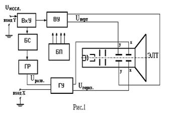 Устройство электронного осциллографа можно представить блок-схемой (рис.1)