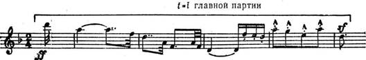 Переключение функций возникает и в процессе становления простой формы, когда первая часть в целом — импульс, за которым следуют стадии развития (середина) и завершения. Последнее происходит посредством репризы начального импульса или с помощью завершающего оборота. Но все вместе взятое — простая форма — служит, в свою очередь, импульсом для дальнейшего развития — образования формы более высокого ранга. Многоступенность переключения функций легко проследить в главной партии первой части Первой симфонии Бетховена. Затакт и сильная доля — начальный импульс (по отношению к вступлению это — завершающее построение). Повторение его интонаций — развитие. Оборот четвертого и пятого тактов — завершение. В целом пятитакт — импульс более высокого ранга, ядро темы главной партии: __________________________________________ 23 Асафьев Б. Музыкальная форма как процесс, с. 129.