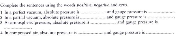1. liquids, gases ___________ 2. water, gas ________ 3. waste waters, waste substances ________ 4. bars, Pascal ______ 5. water level, head of water _____ 6. vacuum, zero Pascals _____