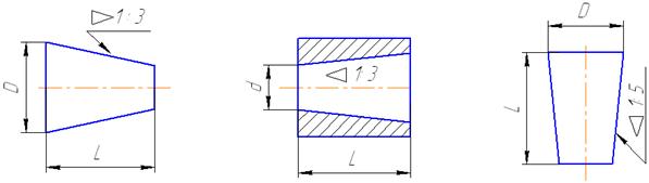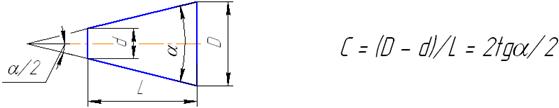 A taper is defined as unit alteration in a specified length measured along the axis in case of a shaft and a base line or a center line in case of flat pieces as shown in Fig. 1.23. The taper is the correlation of difference of diameters of two cone cross-sections toward distance between them (fig.1.23).