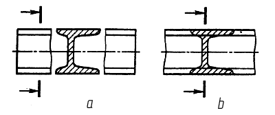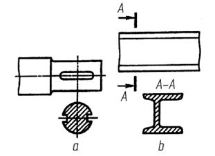 Except of views and sectional views, sections are often used on drawings. A section is the depiction in a figure, got at a mental section one or a few planes, on in case when on a drawing only that got in a cutting plane. A section differs from a sectional views that on its represent that directly gets in a cutting plane only. Sections enter in the complement of sectional drawing, but can exist and as independent depictions. Sections, which are not in sectional views, divide into taken away (carried out separately from a basic image, fig.2.22, a) and imposed (placed on the image of object, fig.2.22, b).