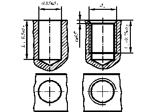 A stud joint consists of a stud - 3 (figure 4.22), a washer - 4 and a nut - 5. An opening is shown in a part 1, its diameter equals 1,1´ dn (where dn is a nominal diameter of a stud thread) at the structural drawing of a thread joint. Actual working length of a stud is found as a sum of the followings parameters: L = d1+Hn + S w + 0.25× dn, where d1 is the thickness of a connecting part, H nis the thickness of nut, S wis the thickness of a washer, dn is the nominal diameter of a thread. The received sum is rounded to the nearest from the resulted standard row of workings lengths - L at table 4.10. Table 4.10 Threaded length l0 according to the set nominal thread diameter dn