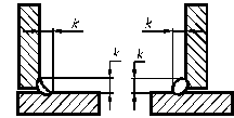 Some corner joints, T- joints and also lap joints are characterized by the size of leg K (fig.4.36). A leg weld is the shortest distance from one surface of welding parts to the border of a corner weld and the surface of another weldable part.