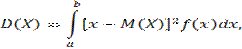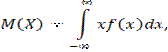 де f(x) — густина розподілу випадкової величини X. Передбачається, що інтеграл збігається абсолютно. Зокрема, якщо всі можливі значення належать інтервалу (a,b), то
