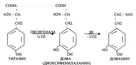 ГАМК является НЕИРОМЕДИАТОРОМ тормозного действия, поэтому препараты на основе ГАМК используются в клинике для лечения некоторых заболеваний ЦНС. Эта реакция используется в педиатрической практике: детям при сильном возбуждении используют раствор витамина В6, который стимулирует процесс образования ГАМК. ДОФАМИН является НЕИРОМЕДИАТОРОМ возбуждающего действия. Он является основой для синтеза АДРЕНАЛИНА и НОР АДРЕНАЛИНА.