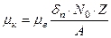 де δ п – густина поглинаючої речовини; Z – атомний (порядковий) номер речовини; А – атомна маса речовини; N 0 – число Авогадро, рівне 6,023·1023 молекул г/моль; μ е – коефіцієнт ослаблення, розрахований на один електрон. Таким чином, число електронів в одиниці об’єму речовини N е буде рівне: