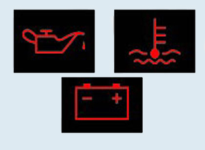 An Oil Pressure Warning Light: this light goes on when the engine oil is not circulating at the required pressure. Some vehicles have an oil pressure gauge that reads LOW when the engine's oil pressure is too low. If you see an oil pressure warning while driving, STOP immediately at a safe place and turn off the engine. A Battery Low Warning Light: when this light goes on or the battery gauge reads LOW, this means that the battery power is running out.