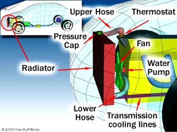 The primary job of the cooling system is to cool the engine and to keep it from overheating. Another important job of the cooling system is to allow the engine to heat up as quickly as possible and then to keep the engine at a constant temperature because when the engine is cold its components wear out faster and the engine is less efficient and emits more pollution. There are two types of cooling systems used in modern cars: air-cooled and liquid-cooled systems.