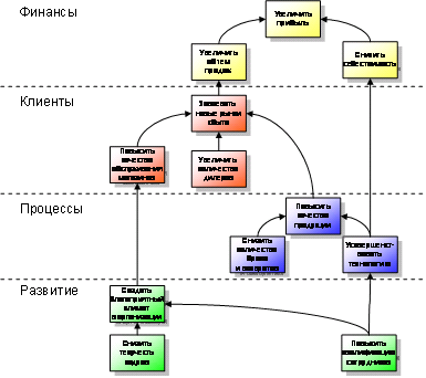 Стратегическая карта – это диаграмма (или рисунок), представляющая стратегию в виде набора стратегических целей и обеспечивающая установку причинно-следственных связей между ними.