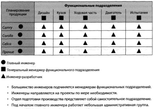 Рис. 7.3. Матричная организационная структуры Toyota.