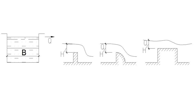 Расчет водосливов – это определение расхода Q по напору H или наоборот. С точки зрения расчетной схемы, водослив представляет собой большое отверстие в тонкой стенке, лишенное верхней кромки. Расход и напор на водосливе связаны формулой: