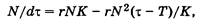 Однако исчерпание пищевых ресурсов может привести также к появлению и других трудностей для популяции, например к развитию болезней. Тогда численность снижается до уровня значительно более низкого, чем поддерживающая емкость среды, а в пределе популяция может даже быть обречена на вымирание. Для S-образной модели в случаях отставания действия регулирующих механизмов по каким-либо причинам, например в связи с затратами времени на воспроизводство или по иным причинам, временное запаздывание учитывает дифференциальное уравнение