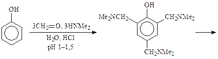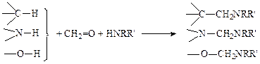 О-, N- или S-Аминоалкилирование проходит при использовании в реакции Манниха спиртов, аминов или тиолов: