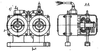 - одновальний віброзбудник (б – знімні додаткові дебаланси)