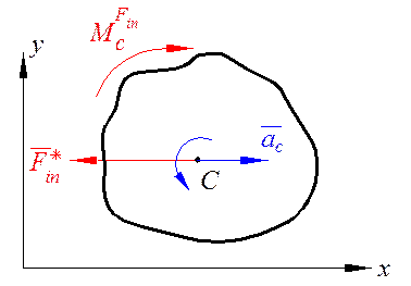 3. Плоско-параллельное движение Тело двигается в плоскости симметрии xoy. Ускорене центра масс В данном случае система сил инерции точек тела приводится к главному вектору сил инерции и к главному моменту от сил инерции относительно