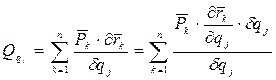 Скалярная величина, соответствующая обобщенной выбранной координате qi (от 1 до s, где s – число степеней свободы) – есть отношение элементарной работы сил, действующих на систему на соответствующем возможном перемещении, вызванном приращением (вариацией) обобщенной координаты, к вариации обобщенной координаты δqj: