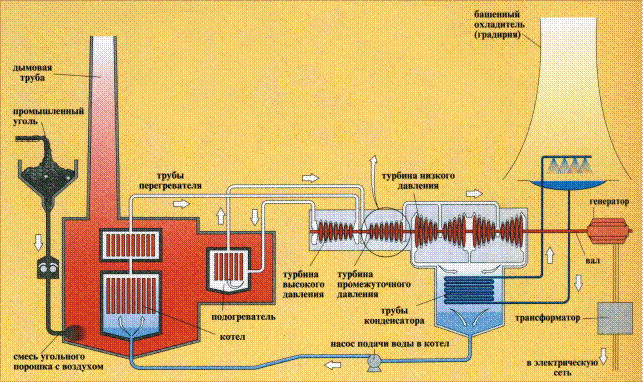 Из формулы (1.3), в частности, видим, что при Т 1= Т оэксергия теплоты равна нулю. В наиболее полном варианте установки, преобразующие теплоту в механическую работу (например паросиловые установки), включают: рабочее тело, осуществляющее замкнутую последовательность термодинамических процессов (цикл); системы подвода теплоты к рабочему телу от источника тепловой энергии; одну или несколько машин, воспринимающих работу рабочего тела или отдающих ему работу; системы отвода теплоты от рабочего тела в окружающую среду. По способу передачи теплоты к рабочему телу различают установки с внешним подводом (теплота подводится к рабочему телу от внешнего источника в теплообменнике) и установки с внутренним подводом (рабочее тело – продукты сгорания топлива).
