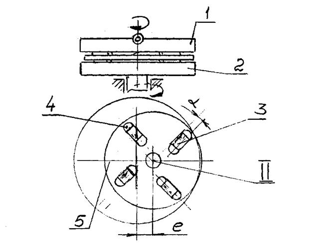 Рисунок 49. Схема притирки: 1 – верхний диск; 2 – нижний диск; 3 – деталь; 4 – прорезь в сепараторе; 5 – сепаратор.