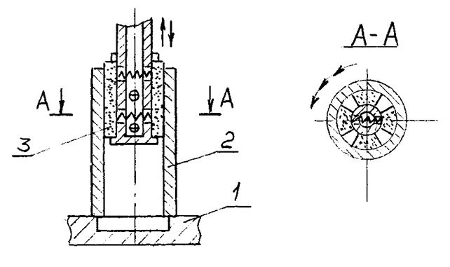 Рисунок 50. Схема хонингования: 1 – стол; 2 – деталь; 3 – хон с брусками.