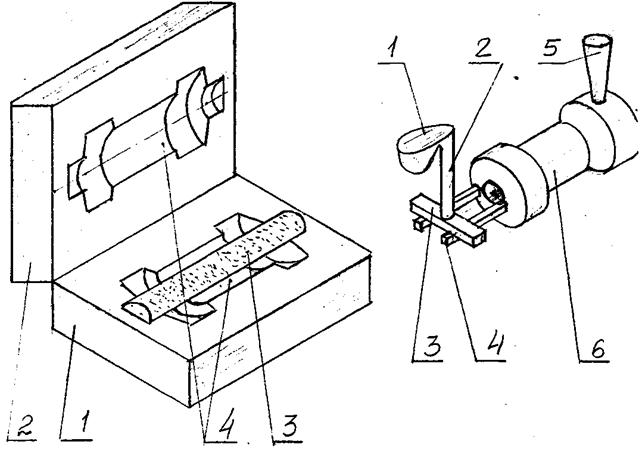 Это самый старый и традиционный метод литья. Применяется для отливок из чугуна, стали и цветных металлов. Метод не требует дорогостоящего оборудования. Его технологический процесс заключается в следующем. В технологические службы поступает чертеж готовой детали Рис. 53 а) Технологи выпускают чертеж заготовки с учетом припусков га механическую обработку, усадку, уточняют литейные уклоны на вертикальных стенках, Рис. 54. Согласно ГОСТа уклоны равны 1/5 для размеров стенок до 25 мм. 1/10 и 1/20 для промежуточных размеров (до 500 мм) и 1/50 для размеров свыше 500 мм. Уклоны необходимы для извлечения форм из формованной смеси без разрушения кромок (углов). б) Из дерева изготавливают в модельном цехе модель, Рис. 55 по размерам технологического чертежа. Модель изготавливается разъемной, из нижней 1 и верхней 2 половины. У модели имеются специальные выступы 3, называемые знаками модели, они служат для создания в форме опорных отпечатков, необходимых для установки стержня. в) Стержень Рис. 56, поз. 1 изготавливают из стержневой смеси, стоящей из основы, например, кварцевого песка и связующего жидкого стекла. Стержень формуют в деревянном ящике 2, изготовленном в модельном цехе. После формовки стержни просушивают. г) Модель формуют в так называемую формовочную смесь (“землю”) состоящую из песка, глины и связующих элементов, того же, например, жидкого стекла, воды. Добавляются противопригарные добавки. Формовочные (и стержневые) смеси должны обладать эластичностью, газопроницаемостью, прочностью и податливостью. Смесь перемешивается на устройстве, которое называется – бегуны, состоящие из бака, вращающейся центральной оси с укрепленными на ней через рычаги роликами. Формованную смесь непосредственно перед употреблением разрыхляют на специальных машинах – разрыхлителях. При повторном употреблении отработанной смеси ее просеивают для очистки от посторонних предметов и добавляют свежие формовочные материалы. д) Формовку производят в специальных рамках, называемых опоками. Они делятся на нижнюю Рис. 57 поз. 1 и верхнюю 2. После заформовки половинок модели, в земле остаются пустоты, соответствующие форме модели. В выемки от стержневых знаков модели устанавливают стержень 3. В полость 4 теперь остается залить жидкий металл. Но для этого следует создать литниковую систему – систему каналов, по которой жидкий металл поступает в форму. Обычно литниковая система состоит по Рис. 58. из литниковой чаши 1, стояка 2, шлако-уловителя 4, выпора 5, расположенного в конце отливки 6. В литниковой чаше гасится кинетическая энергия струи металла, в противном случае он может просто разрушить земляную форму. При протекании металла через шлакоуловители, в них остаются тяжелые шлаки (осадок), по питателям металл поступает в полость формы. При контакте горячего металла с землей, образуются газы, которые частично уходят через газопроницаемую “землю”, но часть этих газов и вытесняемый из формы воздух выходит через выпор 5, кроме того в выпоре остаются легкие шлаки, образуется усадочная раковина, что улучшает качество отливки, по степени появления жидкого металла в выпоре, можно судить о полноте заполнения формы. После остывания отливку выбивают из опок, при серийном производстве эту операцию производят на вибраторах. Литниковую систему отбивают или отрезают. Недостатками литья