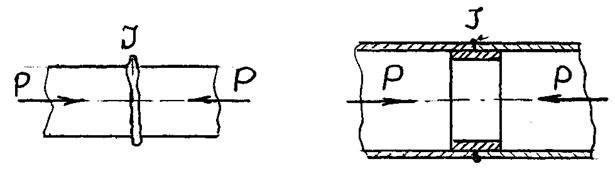 ЭЛЕКТРИЧЕСКАЯ КОНТАКТНАЯ СВАРКА При электрической контактной сварке для нагрева свариваемых частей используется тепло, выделяемое при прохождении тока через место сварки. В месте контакта деталей наблюдается увеличенное электрическое сопротивление по сравнению с другими участками цепи. После достижения в зоне сварки необходимой температуры, свариваемые части для их соединения сдавливают. Существует три вида контактной сварки: стыковая, точечная и роликовая. Стыковая сварка. Для стыковой сварки соединяемые части Рис. 85 занимают в колодках (губках) сварочной машины и пропускают через них ток большой силы. При этом в зоне контакта частей выделяется большое количество тепла и происходит нагрев их до термопластического состояния. Нагретые части сдавливаются и в месте их контактов происходит сварка; этот способ – сварка сопротивлением; он применяется для низкоуглеродистой стали и цветных металлов. Другая разновидность стыковой сварки – сварка оплавлением. При сварке оплавлением ток включают, имея зазор между частями: при их сближении происходит выбрасывание искр и оплавление поверхностей на стыке. При последующем сжатии (осадке) частей жидкий металл и шлак, образовавшиеся на стыке, вытесняются и части свариваются. Этим способом можно варить легированную сталь, а также разнородные металлы: медь и сталь, ковкий чугун и сталь, латунь и сталь, алюминий и медь и др. Стыковая сварка возможна для сечений до 50000 мм2 и более, причем форма на стыке может быть самой разнообразной: круглой, квадратной, фасонной (рельсы, трубы). Недостатком такой сварки является образование венца из выдавленного металла и шлака по контуру шва, называемого ГРАТОМ. Грат, если он мешает работе детали, удаляют. Особенно трудно удалять грат на поверхности труб малого диаметра. При сварке современных трубопроводов для нефти и газа используют внутреннюю подложку из медных пластин для избежания возникновения грата, Рис. 85. Точечная сварка. При точечной сварке свариваемые листы зажимаются между двумя электродами. Верхний электрод подвижный и имеет пневматический или гидравлический привод; нижний служит основанием, Рис. 87. Сваривают обычно тонкие листы, причем толщина листов может быть неодинакова, а суммарная толщина пакета не более 3-4 мм. Для сварки пакета одинаковой толщины из углеродистой или нержавеющей стали требуется меньшая мощность, чем при сварке листов из алюминиевых и медных сплавов ввиду большей их теплопроводности. Диаметр сварной точки обычно 3-6 мм, расстояние между ними называется шагом. Через пакет из листов пропускается импульс тока большой силы (I). Время импульса изменяется в больших пределах от десятков до тысячных долей секунды в зависимости от толщины пакета и свариваемых материалов. Вследствие большого сопротивления место контакта свариваемых частей нагревается до термопластичного состояния и под влиянием давления (Р) электрода происходит сварка. Роликовая шовная сварка. Такой сваркой соединяют листы толщиной до 2 мм из низкоуглеродистой стали и листы толщиной до 1,5 мм из нержавеющей стали, латуни, бронзы и алюминиевых сплавов. Подготовленные свариваемые части пропускают между вращающимися роликами – электродами, Рис. 88, шовной машины, через которые проходит электрический ток, выделяющий тепло в месте соприкосновения сварив