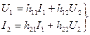 Рис. 10. Блок‑схема четырехполюсника с h ‑параметрами Основой для анализа четырехполюсника является система уравнений, связывающая входные и выходные токи I 1 и I 2 и напряжения U 1 и U 2. Таких систем может быть три, в зависимости от того, что принято за независимые переменные y, z и h. Наибольшее распространение получила система h ‑параметров, при которой за независимые переменные для биполярного транзистора принимают ток на входе I 1, напряжение на выходе U 2. Эта система имеет вид: