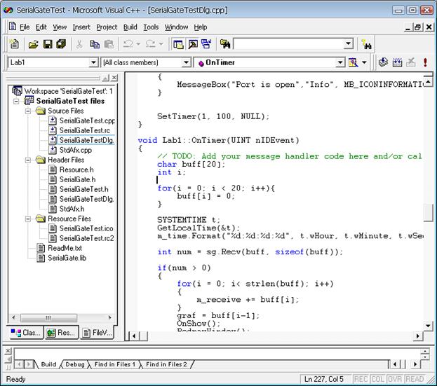 Для створення програми передавача даних через послідовний асинхронний інтерфейс RS-232C (COM-порт) використовуємо компоненту SerialGate (рис 7) див. лістінги програми.
