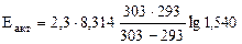 где S – площадь цинковой пластины, см2; τ – время протекания реакции, мин. Определяем отношение скоростей выделения водорода при двух различных температурах (площадь пластины и время протекания реакции постоянны):