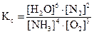 Следовательно, при повышении давления равновесие системы смещается вправо (→). 3. Вычислить константу равновесия для гомогенной системы 4NH3(г) +3O2(г) <=> 2N2(г) + 6H2O(г), если исходные концентрации NH3(г) и O2(г) соответственно равны 6,0 и 5,0 моль/л, а равновесная концентрация N2(г) равна 1,8 моль/л.
